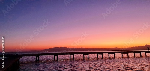 © dalia, Obraz premium Sunset with beautiful colors by the sea and marina