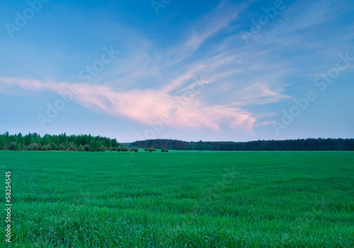 © milosz_g, Fototapeta premium sunset with beautiful sky over green field