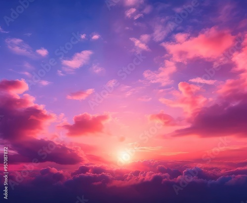 © Nipon, Obraz premium sunset with clouds and bright pink sky