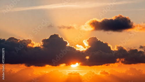 © huanghe, Fototapeta premium Sunset with clouds and sun rays