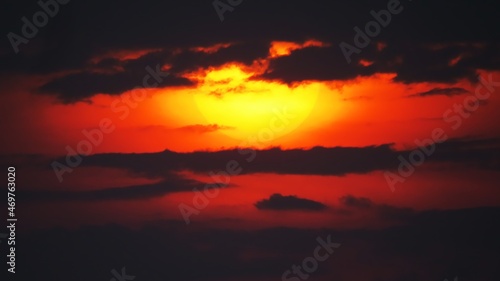 © AbdiasRosendo, Naklejka premium Sunset with clouds simulating mountains and fog