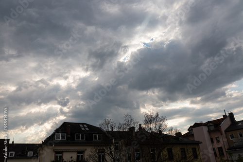 Fototapeta premium Sunset with cloudy dramatic sky over the roofs