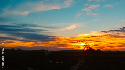 © Martin Erdniss, Fototapeta premium Sunset with dramatic clouds near Wallersdorf, Dingolfing-Landau, Bavaria, Germany