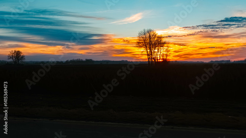 © Martin Erdniss, Fototapeta premium Sunset with dramatic clouds near Wallersdorf, Dingolfing-Landau, Bavaria, Germany
