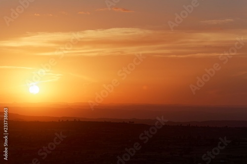 © ChrWeiss, Fototapeta premium Sunset with mountain silhouette and clouds