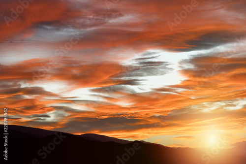 © majivecka, Obraz premium Sunset with reds above the mountains.