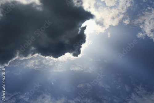 Fototapeta premium Sunset with sun rays. light because of a beautiful dark cloud. Hope, a sense...