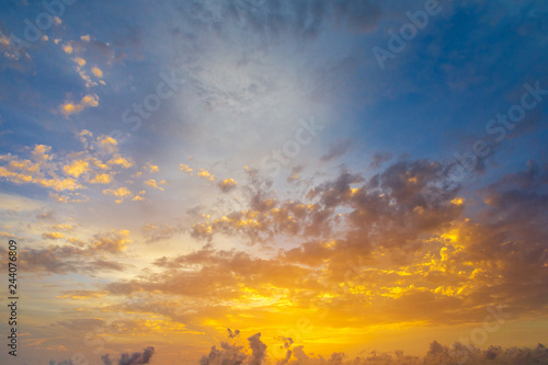 Obraz premium Sunset with sun rays, sky with clouds and sun.