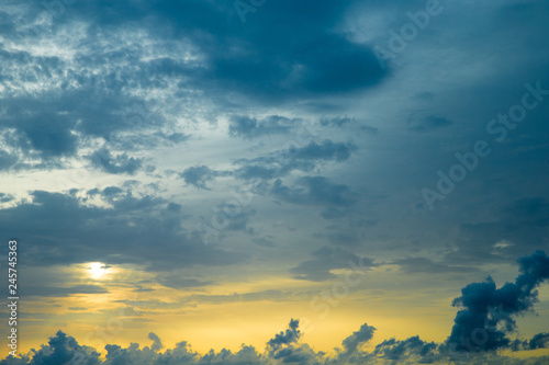 Obraz premium Sunset with sun rays, sky with clouds and sun.