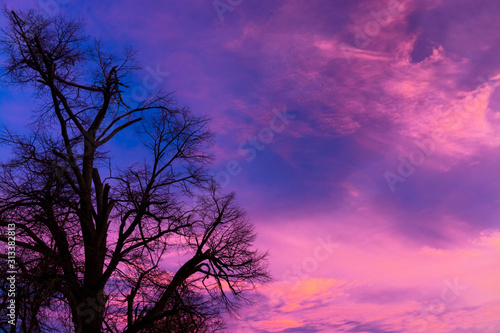Obraz premium Sunset with tree without leaves in wintertime