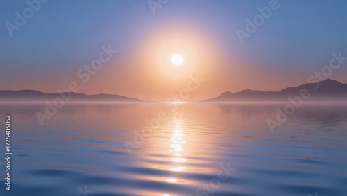 Fototapeta premium SunsetOverCalmSeaWithMountainSilhouettes