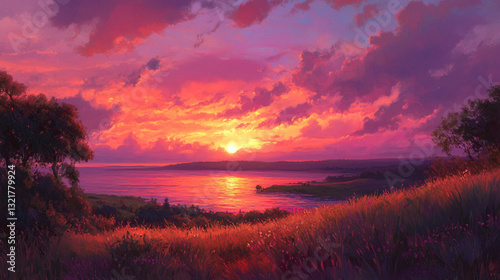 © Pug, Fototapeta premium Sunsets over the horizon paint the sky with warm shades of pink, orange, and purple.