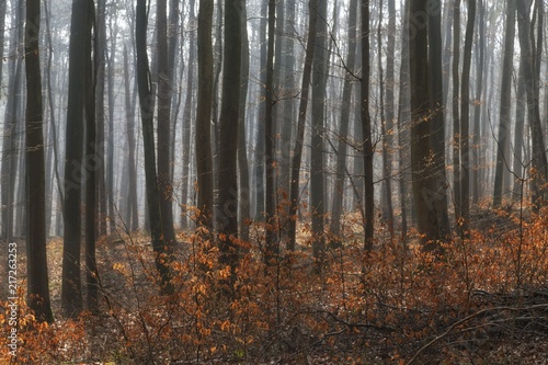 Fototapeta premium sunshine and fog in the forest