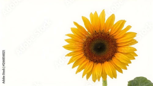 © LooPanda-Pictures, Fototapeta premium Sunshine in Bloom: A vibrant, yellow sunflower blossoms against a bright, white backdrop, showcasing its radiant beauty and optimistic energy. The flower's swirling petals, a symbol of joy and warmth.