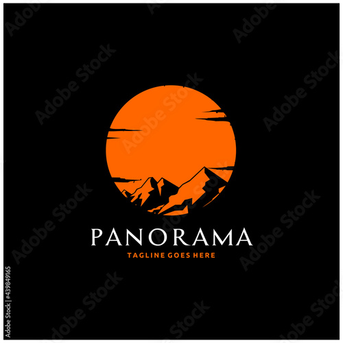 © quatrovio, Fototapeta premium Sunshine Mountain Peak with Sun Logo Design Inspiration