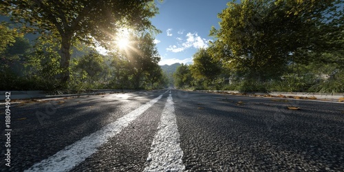 © Oleg Frolov, Fototapeta premium Sunshine Road with 2026 Year Mark in Bright Future Scene