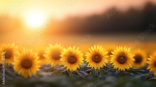 Fototapeta premium Sunshine Sunflowers turning their heads toward the rising sun, full of energy.