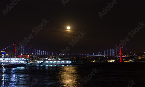 Obraz premium Super Blue Blood Moon over Bosphorus Strait, Istanbul, Turkey