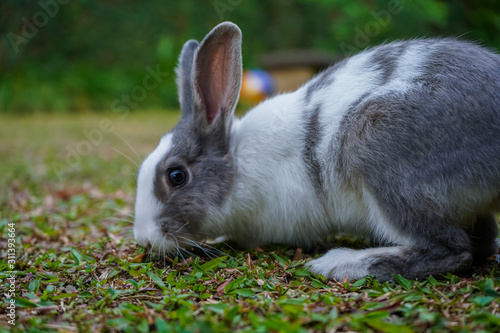Fototapeta premium Super cute white and grey rabbit