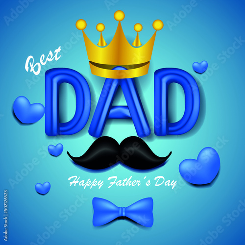 © vectore, Naklejka premium super dad banner. happy father's day greeting card design with golden crown, mustache and blue heart. celebration illustration for dad.