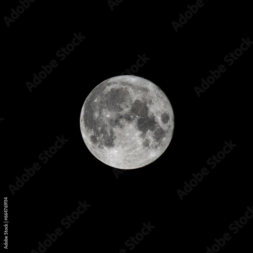 © Dmitrii Potashkin, Fototapeta premium Super fool moon on black background, detailed image