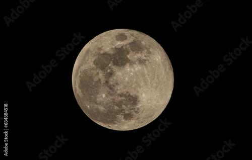 Fototapeta premium Super full moon in the night sky, closeup of photo.