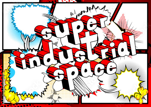 Fototapeta premium Super Industrial space - Vector illustrated comic book style phrase.