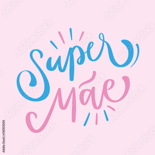Obraz premium Super Mãe. Super Mom in brazilian portuguese. Modern hand Lettering. vector.