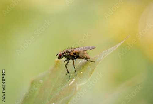 © Christine Grindle, Fototapeta premium Super Macro Fly With Giant Red Eyes on Blur Green Nature Background