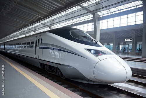 © juliars, Fototapeta premium Super modern speed train. Fast transport. Generate Ai