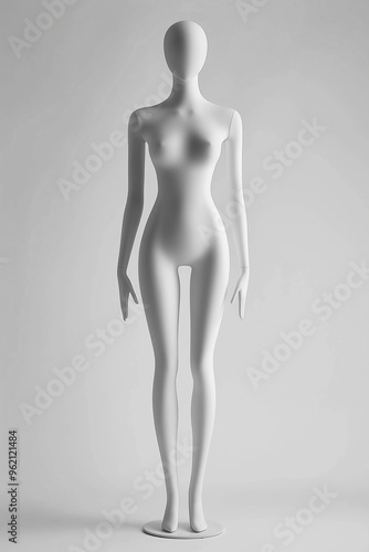 © Magryt, Fototapeta premium Super slim xs size female mannequin with thin body figure on light studio background. Fashion figure template. Dummy, modern fashion and style. Naked woman mannequin, fashion show