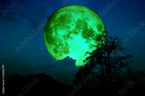© darkfoxelixir, Fototapeta premium Super strawberry moon back cloud and tree in the field and night sky