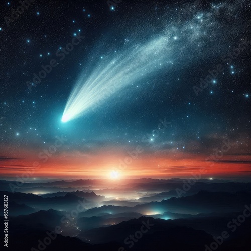 © Mo Stock, Naklejka premium Super ultra Bright Comet at Night sky