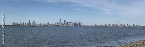 Fototapeta premium super wide angle view of new york city skyline on the hudson river with...