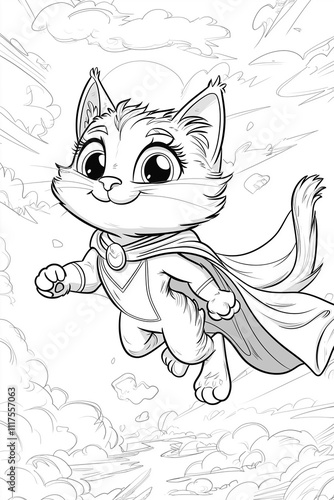 © ako-photography, Fototapeta premium Superhero Cat Coloring Page for Kids