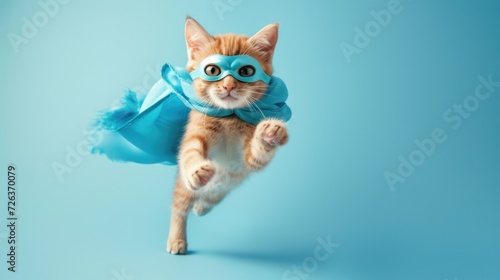 Fototapeta premium Superhero Cat Flying in color Cape