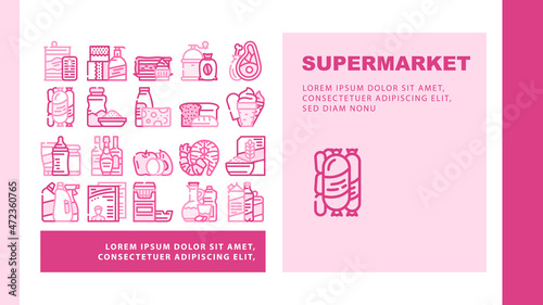 Fototapeta premium Supermarket Selling Department Landing Web Page Header Banner Template Vector...
