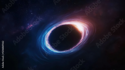Fototapeta premium Supermassive Black Hole at the Center of a Galaxy with Accretion Disk and Cosmic Background