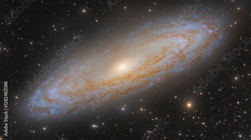 Fototapeta premium Supermassive black hole expels glowing star streams amid galactic collision,...