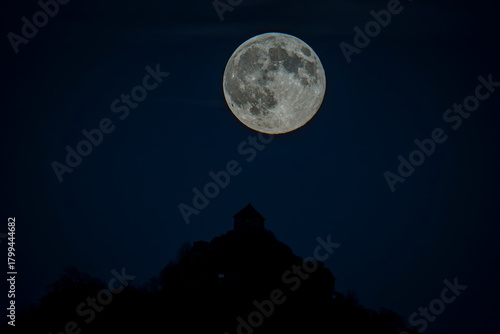 © Geza Kurka, Fototapeta premium Supermooun in the sky. Amazing sharp view of the craters.