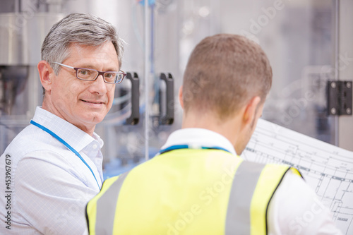 © KOTO, Obraz premium Supervisor and worker reading blueprints in factory