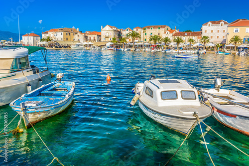 © dreamer4787, Fototapeta premium Supetar Brac coastline promenade. / Mediterranean promenade of town Supetar, touristic destination on Island of Brac, Croatia, summer time. / Selective focus.