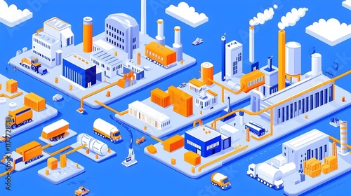 Fototapeta premium Supply Chain Dynamics, a detailed diagram illustrating the interconnected flow of materials, information, and processes in a supply chain system