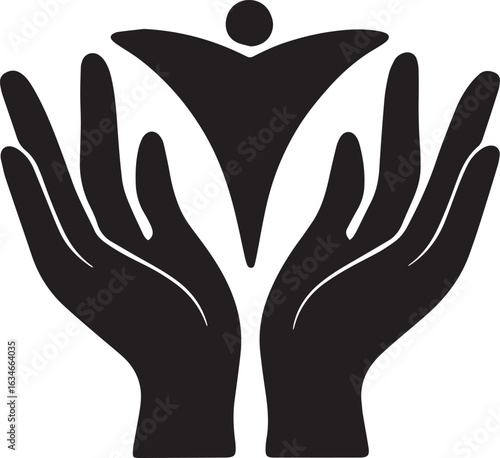 © Zakir Ali, Obraz premium Support and Care Silhouette Hands Holding Symbol Protection and Assistance Vector Illustration