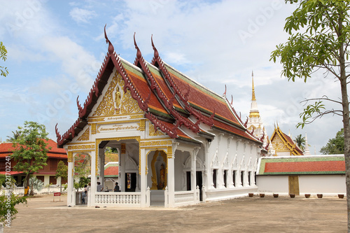 © pumppump, Naklejka premium Surat Thani,Thailand-July 12,2014:The beautiful church in Wat Phra Borommathat Chaiya at thailand