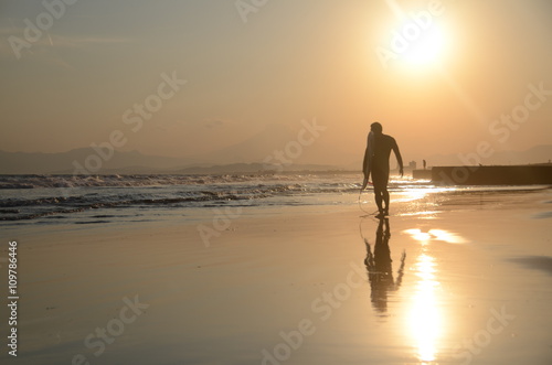 © kenta1984sky, Naklejka premium 夕景 湘南の夕日 surf