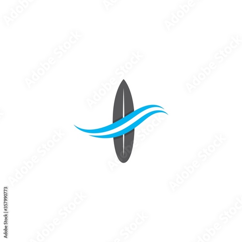 Fototapeta premium Surf board logo with waterwave vector icon