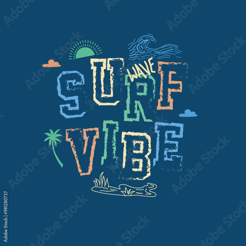 Naklejka premium Surf Vibe summer beach ocean typography colorful element graphic print design