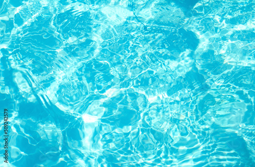 © Alena Labutina, Fototapeta premium Surface of blue transparent water in the pool