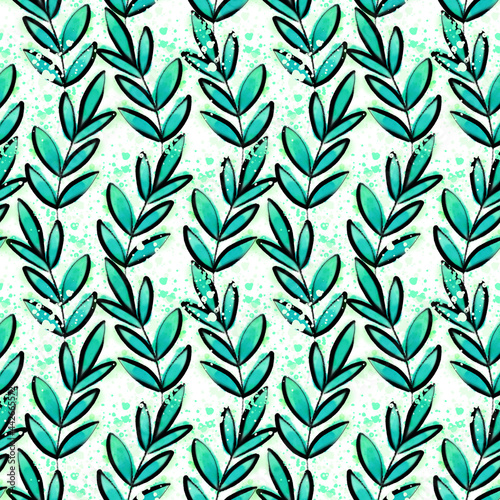 © Maryna_R, Naklejka premium Surface pattern design with branches with leaves Floral seamless drawing